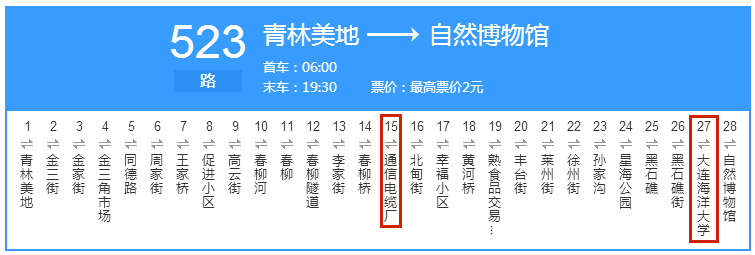 2. 乘坐46路公交車 轉523路公交車:機場站 → 通信電纜廠站(轉乘523路公交車) → 大連海洋大學站