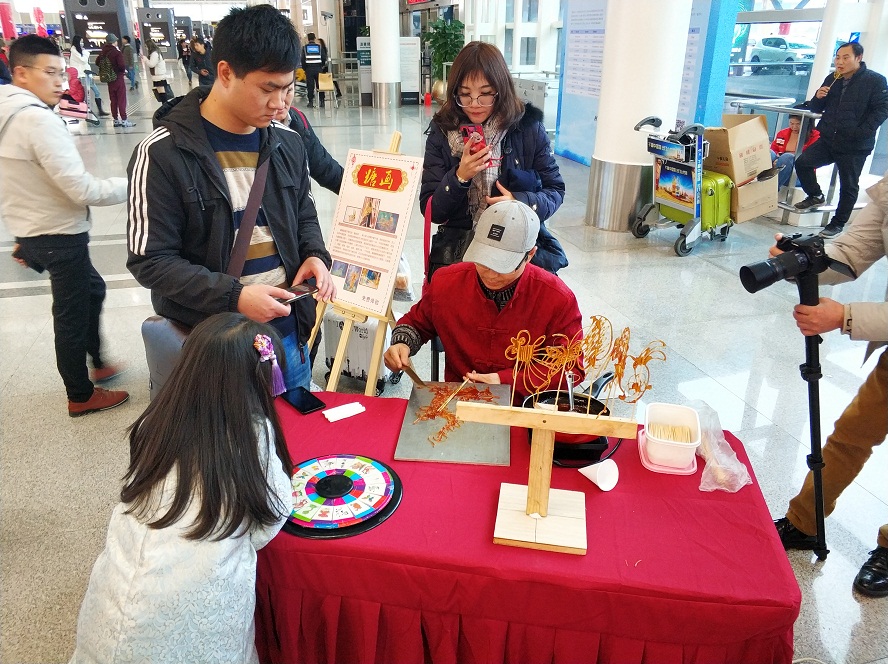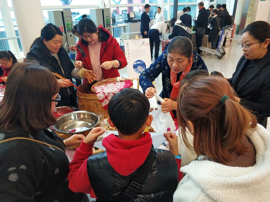 2020年春運如火如荼展開,杭州蕭山國際機場“幸福起航”春運品牌活動成為了今年航站樓春運的文化新亮點。1月10日至18日期間,紅墻祈福、福鼠合影、互動抽獎、書法家贈福、非遺民俗等活動輪番上陣,航站樓內年味十足,吸引了大批旅客駐足參與。為進一步弘揚地域傳統文化,活動現場更有四項傳統手藝傳承人驚喜現身,展現扎染、剪紙、制作糖人和皮影戲四項民俗技藝,讓旅客親手制作一份傳統民俗小禮,帶著溫暖和祝福回家。