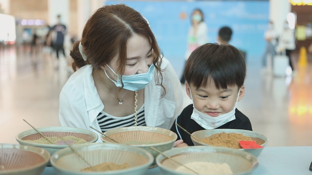 端午佳節,航站區中心在T1航站樓開展了“佩香驅疫,邂逅溫暖旅行”文化活動。結合當下疫情特點,活動特推出了由吳茱萸、白芷、木香、艾草、檀香等十二味藥材為香材的“防疫香包”。活動現場,旅客在工作人員的指導下使用小匙取香粉動手制作香包,體驗古人的風尚雅事。旅途匆匆,貼身而去的香袋帶去旅途的安然,讓旅客追尋端午傳統文化的印記,感受航站樓的傳統文化氛圍。
