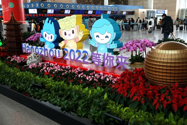 此外,為營造新春節日氛圍,航站區中心在出發大廳G值機島設置了虎年新春主題景觀,并結合杭州地域文化特色、亞運主題元素,在7號門、11號門等區域用綠化景觀打造“三潭映月”及亞運主題特色景觀,旅客紛紛打卡留念。