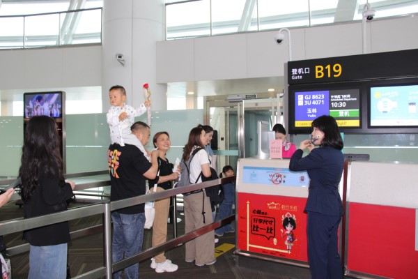 活動以一曲《萱草花》拉開帷幕,悠揚舒緩的曲調在竹笛的演奏下,顯得尤為空靈婉轉,道出了全天下母親對孩子最深的愛與牽掛?!白D澣湛鞓?”隨后,活動工作人員為親子旅客送上精心準備的小禮物,請小朋友們為母親送上鮮花并說出對媽媽的愛。活動吸引眾多旅客的關注和參與,大家紛紛打卡拍照與家人朋友分享這一美好瞬間。